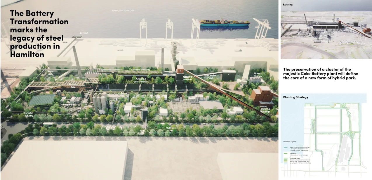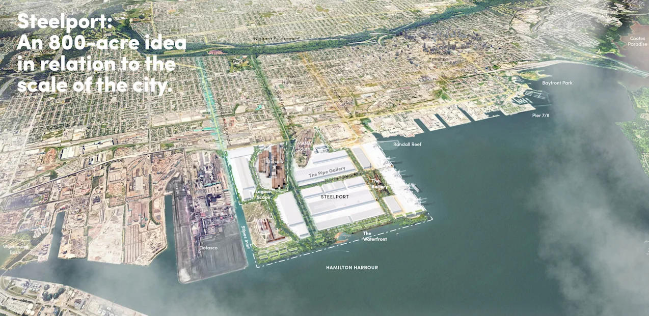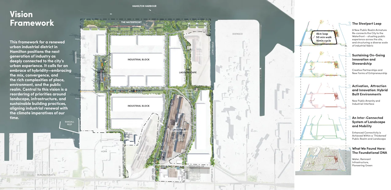 PUBLIC WORK’s vision for the transformation of 800 acres following the decommissioning of Stelco’s steel plant represents a generational opportunity for the City of Hamilton to restore its connection to the harbour and its cultural heritage. As the city evolves from its legacy as a centre of heavy industry into a modern, diversified economy, these extraordinary lands can support a distinctly Hamilton fusion of creative industry, community life, waterfront access, and ecological regeneration—while retaining the memory of what came before.