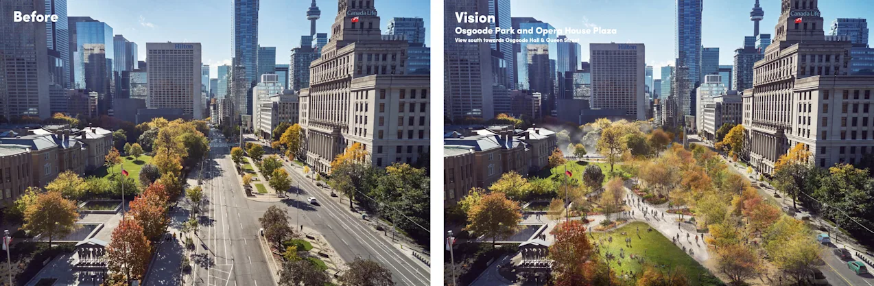 Led by PUBLIC WORK, in partnership with The Michael Young Family Foundation and Evergreen, this unique city-building initiative seeks to revitalize University Avenue as the defining civic landscape of Toronto. First envisioned through PUBLIC WORK’s TOcore Parks and Public Realm Vision, the proposal demonstrates how strategic street redesign can create significant new parkland, balance mobility, and reshape the daily experience of the city. The result is a bold and timely plan rooted in today’s urban priorities: social equity, climate resilience, public health, community wellbeing, and urban vitality.